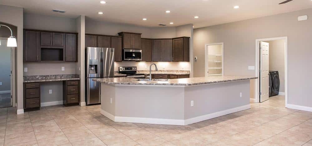 Viva a lo grande en Wynona con Loft, un nuevo plano de vivienda en Florida de Highland Homes, con un diseño de primer piso similar al de nuestro plano de vivienda de Wynona, el loft agrega 421 pies cuadrados de espacio habitable sobre la sala de reunión. The Wynona with Loft ofrece un exterior de estilo Craftsman clásico combinado con la comodidad de un interior de diseño moderno con opciones de habitación flexibles. Te encantará la sala de estar abierta que consta de una sala de reunión, una cafetería soleada y una cocina abierta con un escritorio empotrado y gabinetes de almacenamiento, una gran barra de desayuno y una gran despensa.